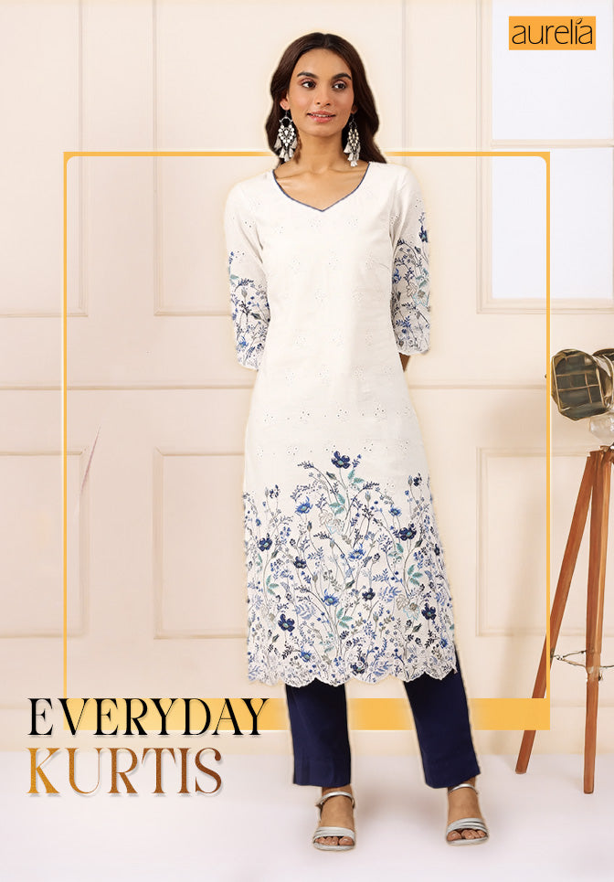 River Green Floral Printed Schiffli Embroidered Breezy Rayon Straight Kurta