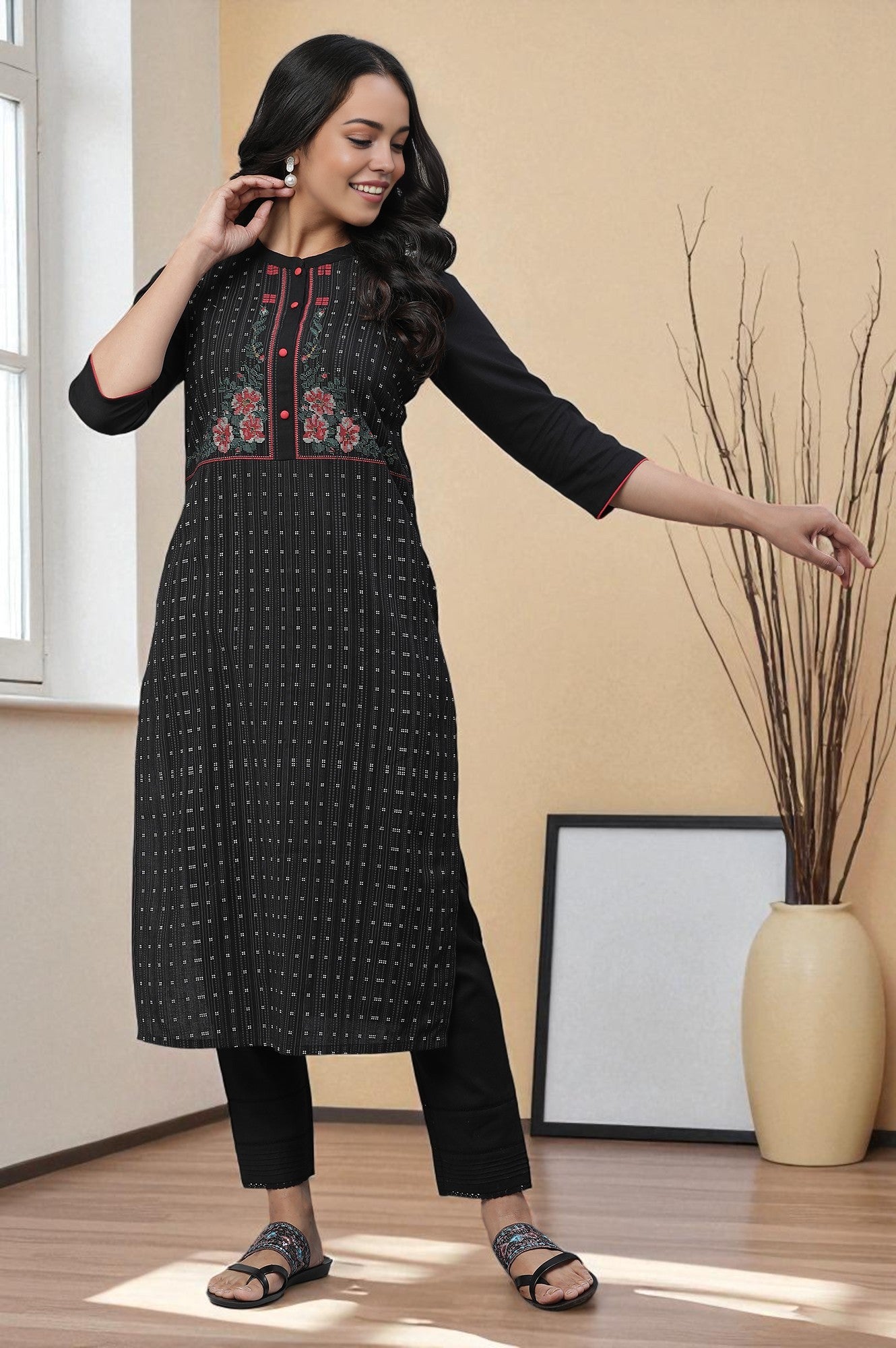 Ocean Blue Yarn Dyed Pure Cotton Straight Kurta in Stylized Neck