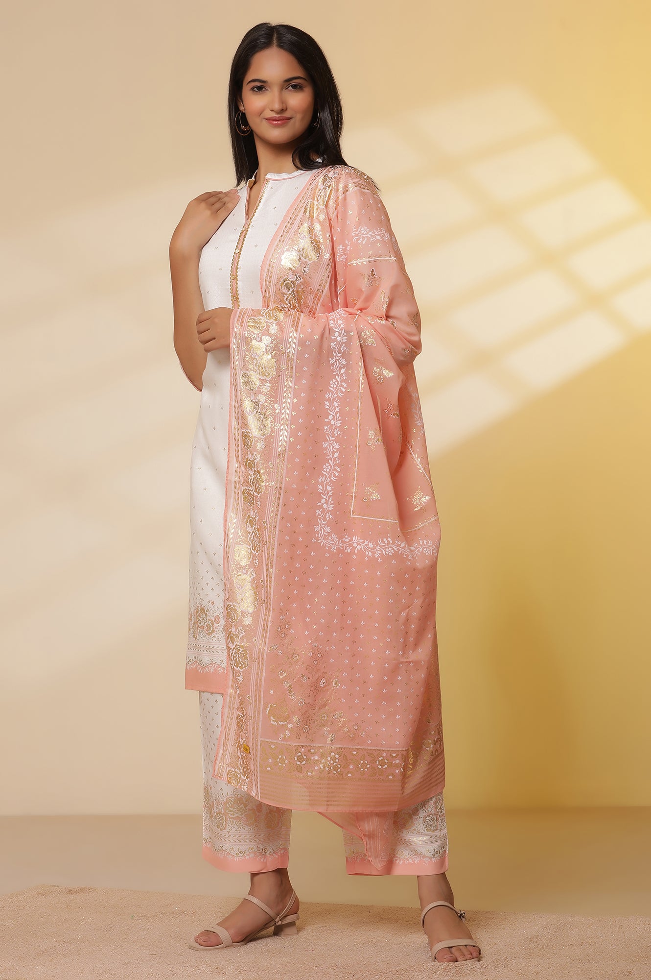 - Mix and match with versatile bottoms and drapes like women’s palazzos, trousers, and matching dupattas to create endless styling possibilities.