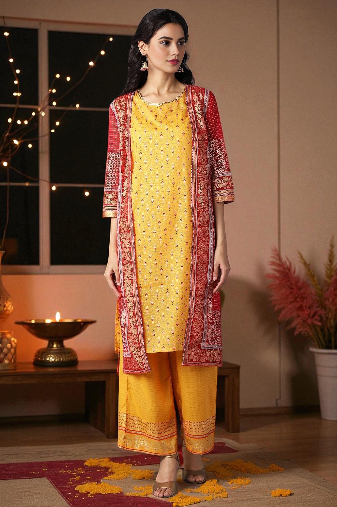 Mutli-coloured Straight Kurta and Pants Co-ord Set
