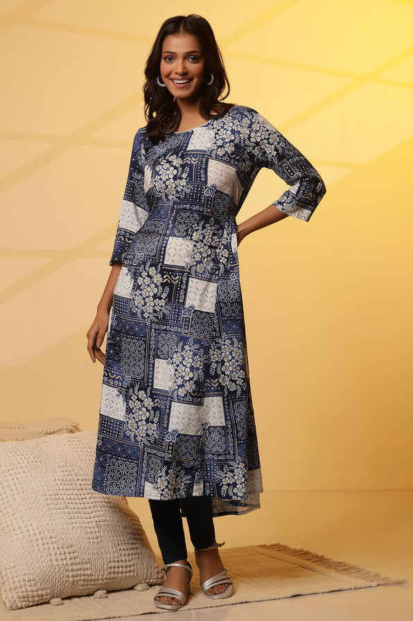Introducing our patch printed rayon kurta, a stylish choice for any occasion. The round neckline adds a classic touch, while the tab-look belt detail creates an intriguing element.