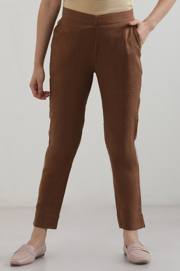 Crafted from a comfortable blend of 55% rayon and 45% flax, these ankle-length trousers from ELLEVEN offer a perfect balance of style and comfort. The dark brown hue adds a sophisticated touch to your ensemble, making them versatile for various casual occasions. The straight cut provides a flattering silhouette that suits a wide range of body types. These woven trousers feature a cotton blend construction, ensuring breathability and durability for all-day wear. The thoughtful design combines practicality with fashion-forward elements, making them a must-have addition to any woman's wardrobe. Whether you're running errands or meeting friends for a casual lunch, these ELLEVEN trousers will keep you looking effortlessly chic and feeling comfortable throughout the day.