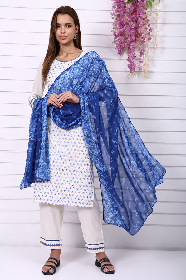 Elevated simplicity defines this cream kurta set in breathable Liva fabric, adorned with schiffily embroidery and soft floral prints. The straight silhouette and coordinating pieces ensure a polished yet laid-back vibe—ideal for warm daytime occasions.