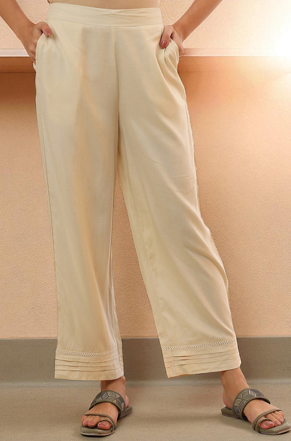 Indulge in the epitome of casual elegance with Aurelia's cloud cream palazzos. These ankle-length trousers are a testament to refined craftsmanship, featuring a woven construction technique that ensures both durability and comfort. Designed exclusively for women, these palazzos boast a straight cut that flatters all body types. The 100% viscose composition offers unparalleled softness and breathability, making them perfect for all-day wear. A delicate lace detail adds a touch of femininity, while the slit design provides ease of movement and a contemporary flair. The fusion ethnicity of these palazzos makes them versatile enough to complement various style preferences. Whether you're attending a casual gathering or simply running errands, these Aurelia palazzos in cloud cream will elevate your look with their effortless charm and comfort.