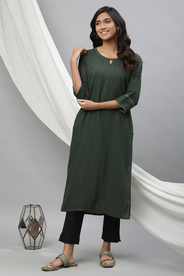 If you have love for solid styles with slight feminine look and feel, then this piece is exclusively for you. It has neck lace detail with a beautiful fabric play.