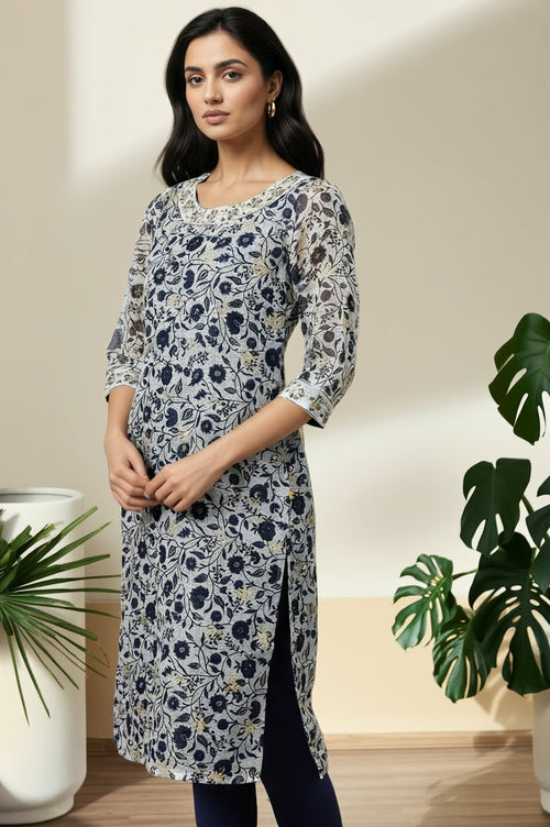 Our sheer kurta redefines elegance with a unique twist. Featuring a contrast inside lining, it offers a captivating look where delicate embroidery adorns the neckline and sleeves, adding to its allure. Flaunt your individual style with this outstanding piece, perfect for making a statement at any occasion.