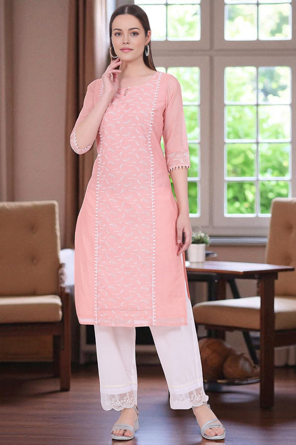 Aurelia offers a charming fusion kurta for women, designed for casual wear. This mid-calf length garment is crafted using a woven construction technique, featuring a unique blend of 87% cotton and 13% nylon. The peach-colored kurta boasts a keyhole neckline, adding a touch of elegance to its overall design. The three-quarter sleeve length provides comfort and style, suitable for various occasions. A notable feature is the slit detail, which adds movement and a contemporary twist to the traditional kurta silhouette. The straight cut of the kurta ensures a flattering fit for different body types. Lace embellishments enhance its aesthetic appeal, striking a perfect balance between simplicity and sophistication. The cotton blend fabric offers breathability and durability, making it ideal for extended wear. Aurelia's attention to detail is evident in this beautifully crafted kurta, making it a versatile addition to any wardrobe. The fusion of traditional and modern elements in this piece reflects Aurelia's commitment to creating fashion-forward yet culturally rooted designs for the contemporary woman.