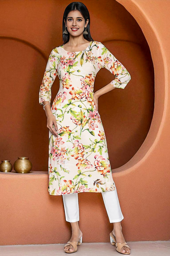 This kurta for women is crafted with attention to detail, featuring elements like those seen in the peach floral printed lace modal straight kurta. Its versatile silhouette makes it ideal for everyday wear or special gatherings. Designed to highlight traditional textures, this piece is a refined option for festive or casual styling. A great addition for those exploring elegant straight kurta.