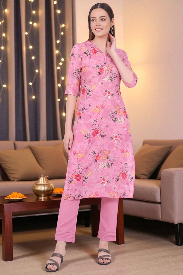 Aurelia presents a stunning fusion kurta that seamlessly blends style and comfort. This rose pink mid-calf length kurta is crafted using a woven construction technique, ensuring durability and a polished finish. The three-quarter sleeves offer a perfect balance between coverage and breathability, making it ideal for various occasions. The round neckline adds a touch of elegance, while the straight silhouette flatters diverse body types. Made from a blend of 50% polyester and 50% poly, this kurta offers easy maintenance and wrinkle resistance. The addition of slits enhances both style and ease of movement, making it perfect for casual outings. This versatile piece from Aurelia's women's department is designed to make a statement while ensuring all-day comfort.