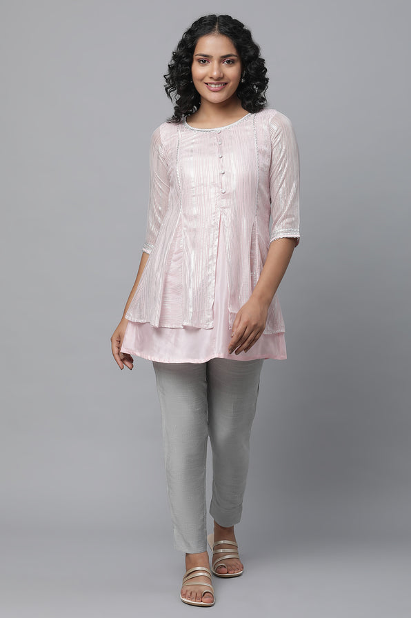 Shower A Fashionable Edge To Your Contemporary Festive Wear Collection In This Double Layered Short kurta. Crafted In A Delicate Flat Chiffon Fabric, It Features A Silver Lace Detail And Slits In The Front. It Is Accentated By Silver Buttons On The Front.