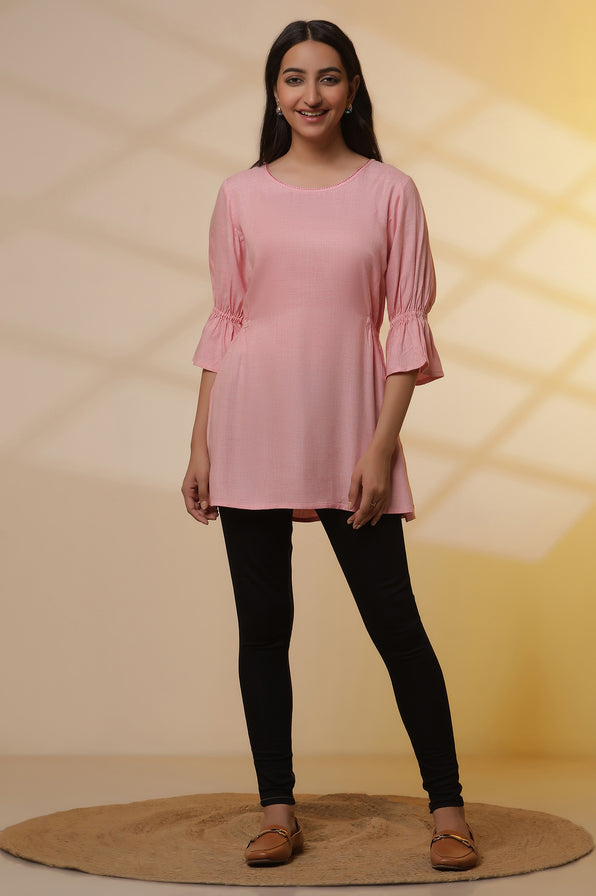 Crafted in breathable melange twill, this kurti and jeggings set is a winning choice for summer look. The kurti consists of elasticised sides and sleeves with a back tuck and button detail. And it comes with blue denim jeggings.