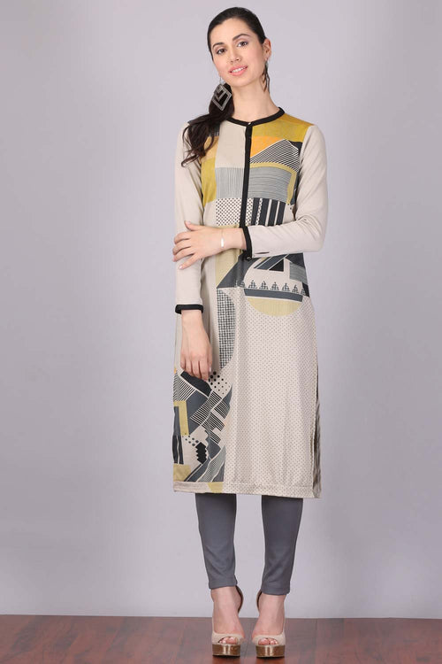 Beige Printed Mandarin Neck kurta