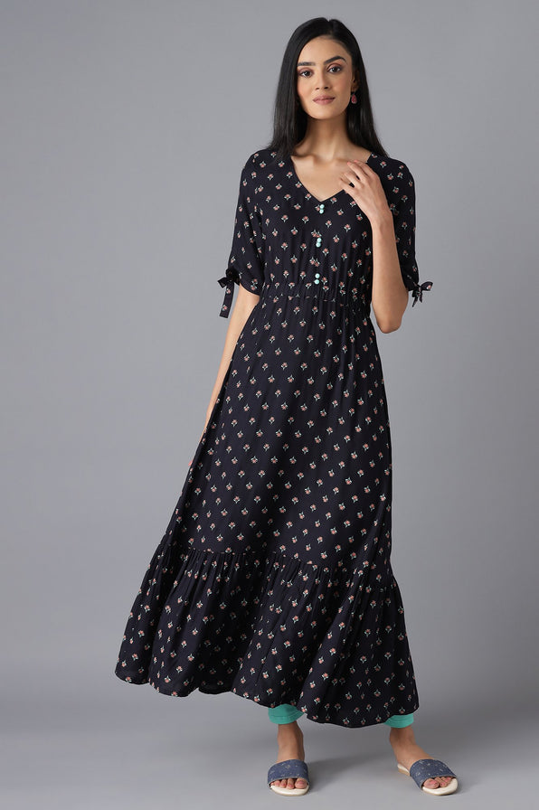 Black Khadi Printed Dress