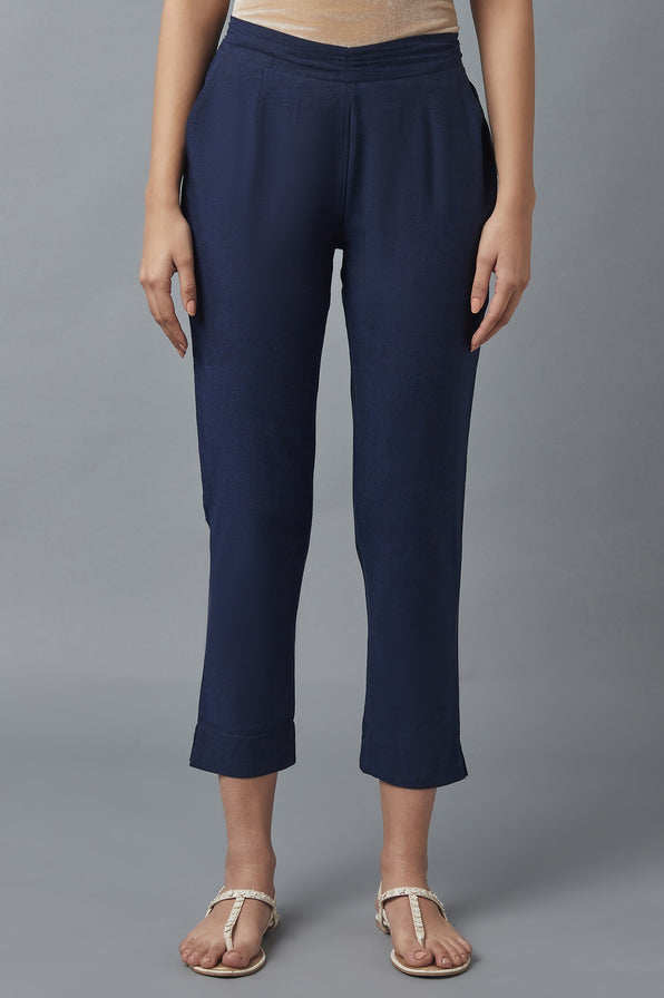 Crafted for effortless style and comfort, these Navy Blue Straight-fit Cotton Pants are a wardrobe essential. The woven fabric offers a soft texture and breathable feel, perfect for casual outings or relaxed evenings. Featuring a partially elasticated waistband and two functional side pockets, these pants combine practicality with chic design. Pair them with a crisp white top or a flowy kurta for a versatile look that transitions seamlessly from day to night.