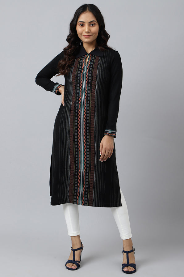 A tonal navy blue 2-piece set is all you need to set foot in this wedding season. It is entirely printed and encompasess a noodle strap sleevesless kurta which has striped printed on it. The gillet has a placement print that has decorated florals all over it. The printed straight palazzo helps complete the ensemble.