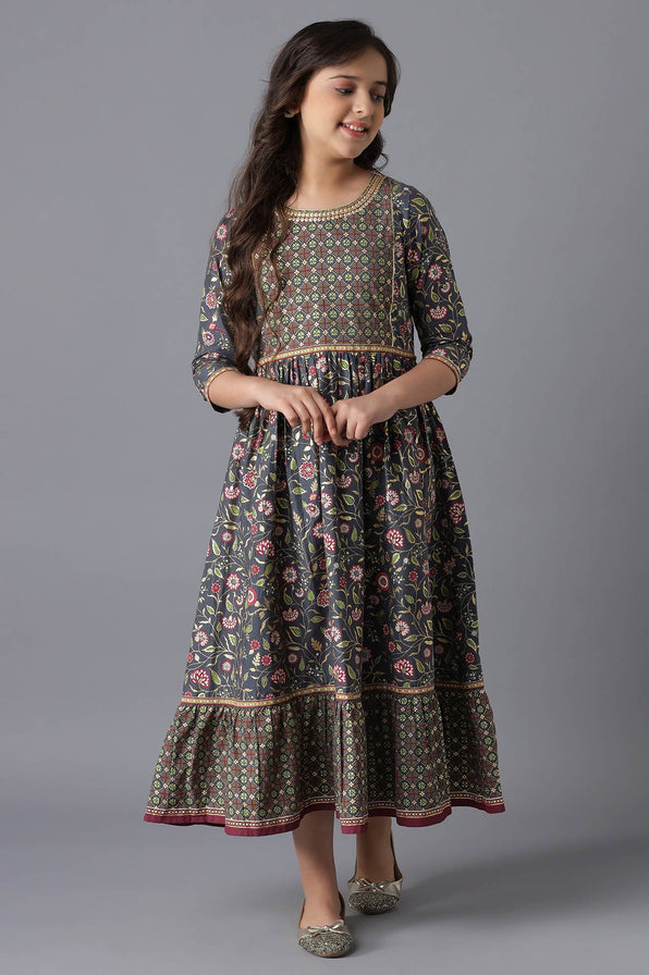 Grey Cotton Girls Dress
