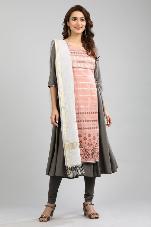 Grey round neck yarn-dyed layered kurta with tie-up at both sides.