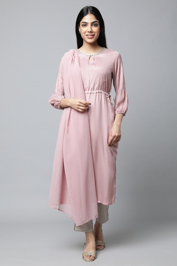 Pop Up Your Festivals With This Beautiful Stylised kurta, It Features Draw String With Tassels On The Waist And Sheer Georgette Sleeve Details.