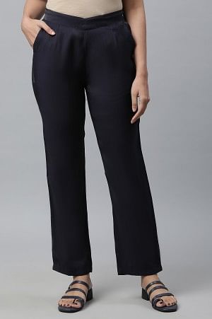 The partially elasticized yarn dyed shiny twill narrow palazzo is a versatile and stylish addition to any wardrobe. The partial elasticization at waist provides a comfortable and adjustable fit. The narrow fit gives a modern and trendy look, while the shiny twill fabric adds a touch of elegance and sophistication. It is designed to give a casual and festive look, making it a perfect option for a range of occasions, from casual daytime outings to more festive events.