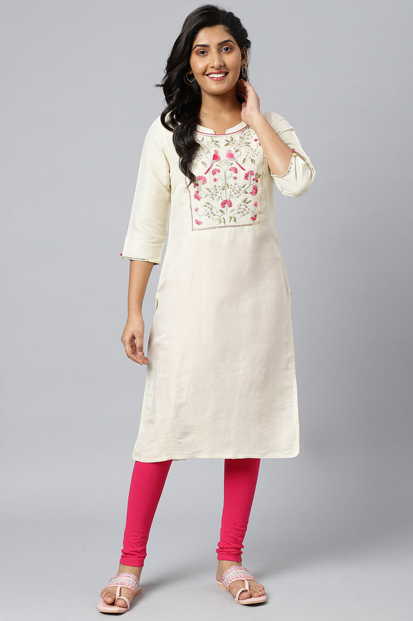 Crafted in exclusive zari cotton dobby and with an exquisite embroidery, this kurta is an absolute statement piece fit for any occasion. It consists of a round neck with collar and cuff detail on the sleeves. Pair it wih our Bright pink palazzo for that pop of colour and our woven stripped dupatta.