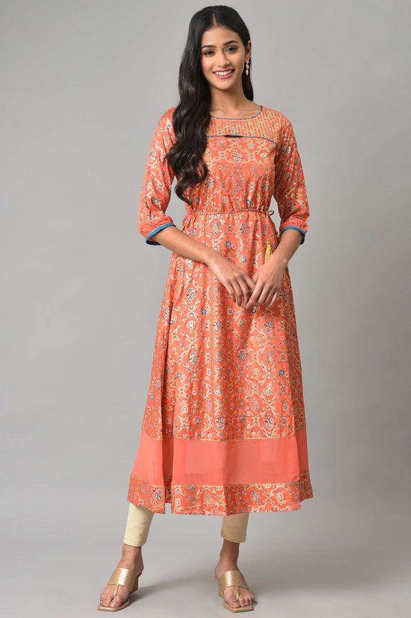 This Stylised Liva kurta Features A Play Of Different Weights Of Fabrics And Has A Sheer Insert At The Bottom. The Neck Panel Is Highlighted With A Series Of Glitter Golden Sequins That Have Been Placed Vertically. It Also Has An Interesting Keyhole In The Neck.