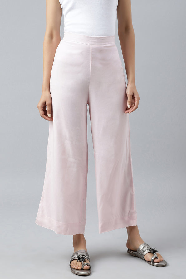 Pink Ankle Length Solid LIVA Eco Palazzos