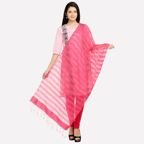 Pink Self-Striped Dupatta