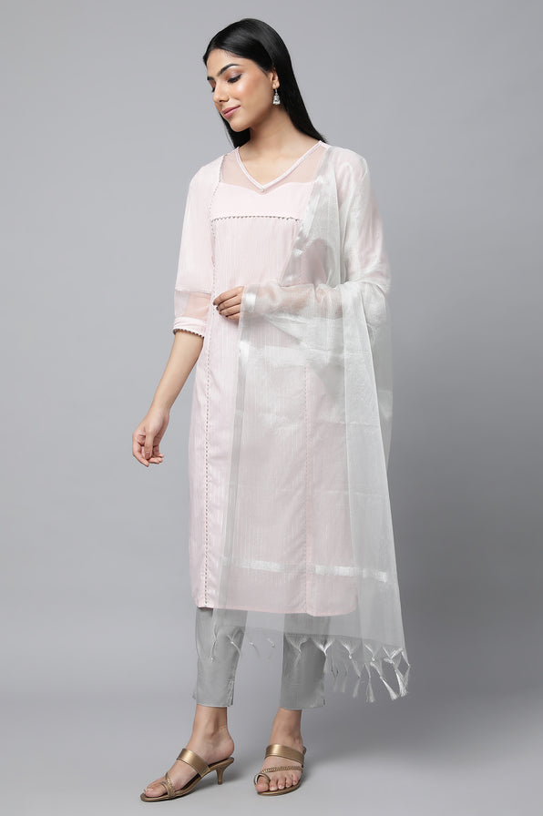 Make A Statement With Our New kurta Featuring A Sheer Neck & Sleeve Detail. It Is Made In Soft Lurex Striped Cotton Fabric, Perfect For Summer Occassions.