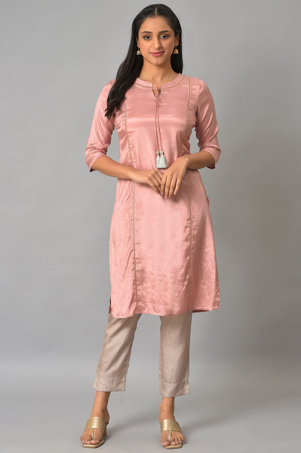 There'S Nothing Quite Like Our Classic Style kurta. Step Out In This Elegant Onion Coloured kurta Adorned With Lace Details & Tassels Tie-Up.