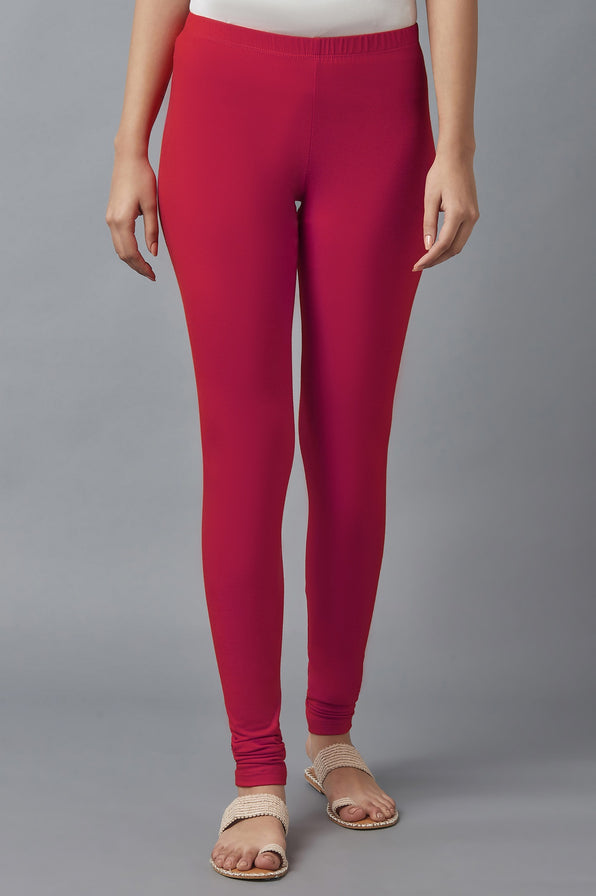 Cotton Lycra Churidar In Vivacious Pink Colour Comes In Midrise And Has Elasticated Waistband.
