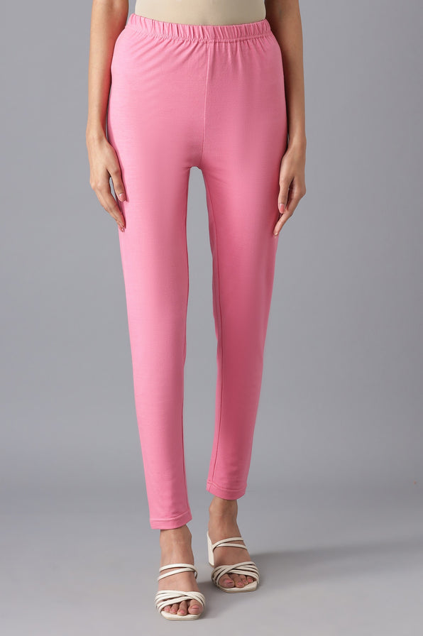 A pair of skin fit ankle length tights in mid-rise and elasticated waistband.