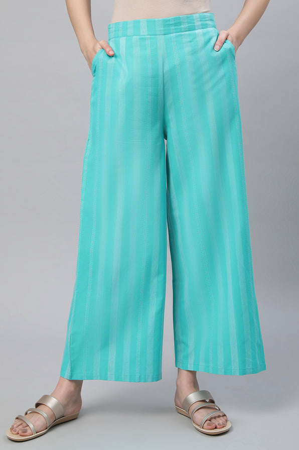 Ankle length straight palazzo has easy fit and two front side pockets. Mid-rise with concealed elastication, this pair of palazzos will be your go to pick.