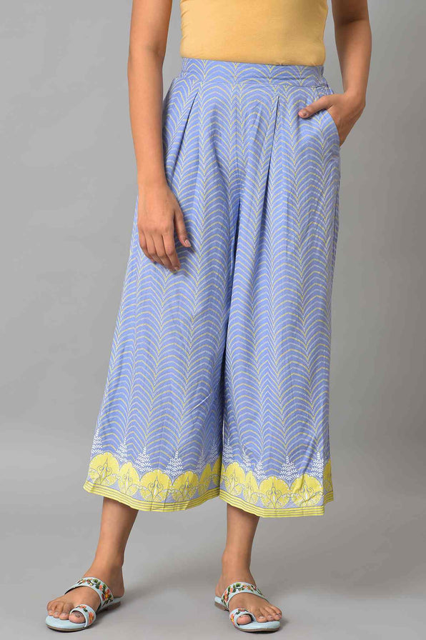 Get A Classy Look In This Pale Iris, Inverted Box Pleat Culotte. It Has Midrise And Partially Elasticized Waist That Gives A Perfect Fit. The Printed Culottes Also Have 2-Side Pockets.