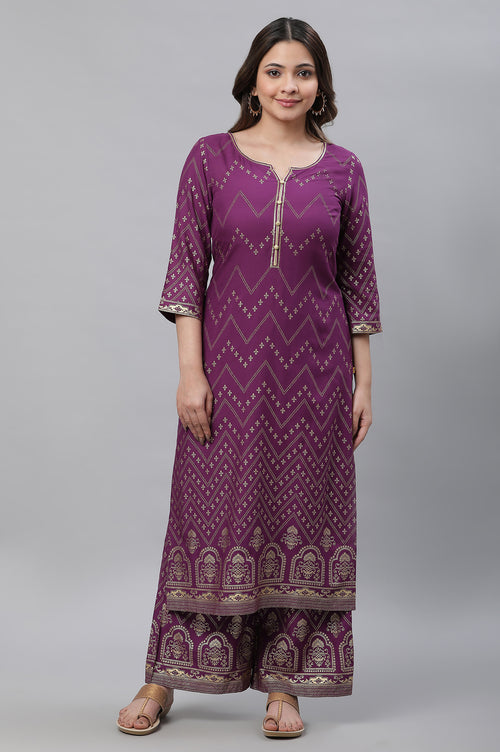 Crafted in premium fabric, this chic festive look kurta in round neck with gold print and gold piping around neck with heavy border hem makes it a must-have for wardrobe.