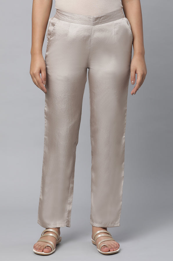 Crafted in a luxurious Korean satin fabric, these gold narrow parallel pants exude elegance and sophistication. The flat front belt and elasticized back belt ensure a comfortable slip-on fit, while the two functional front side seam pockets add practicality to the design. Perfect for festive occasions, these pants offer a sleek straight fit that pairs beautifully with any kurta or tunic for a chic and polished look.