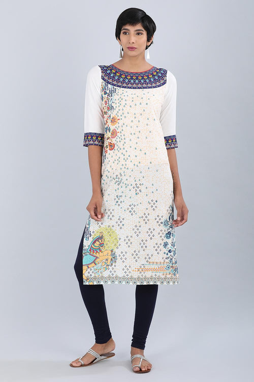 Look gorgeous by wearing this kurta with a blue churidar or palazzo.