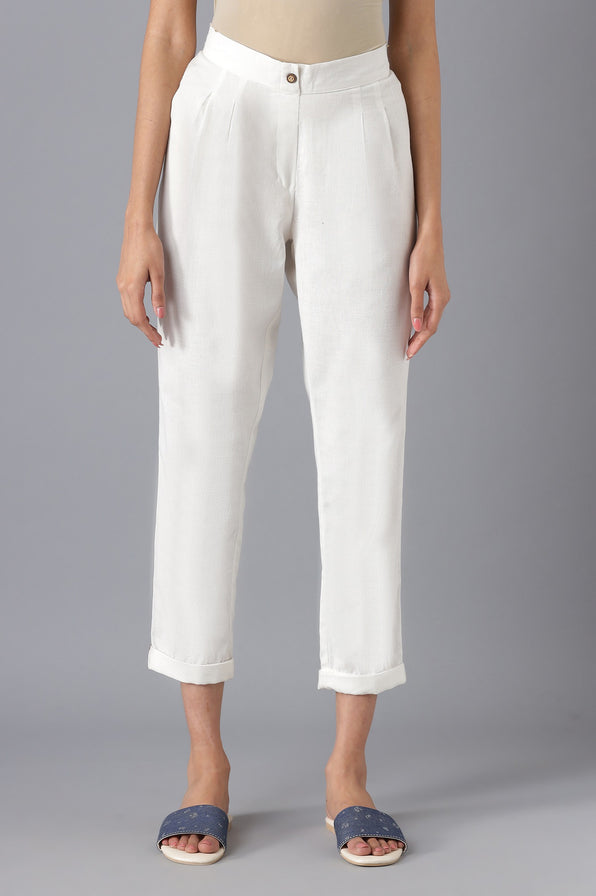 These woven solid trousers are the perfect pick to add in your closet. Be it your date, official meeting or a celebration with this pair of trouser pants you can create endless looks. They come in mid-rise waist and has partially elasticated waistband.