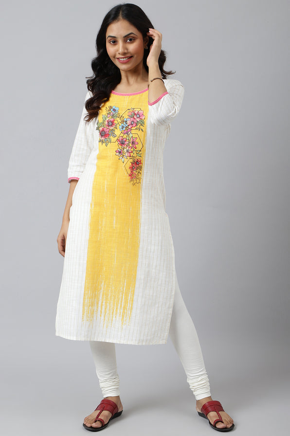 Make a statement in this exclusive placement print kurta in Ivory, with the accents of yellow & pink floral placement. This is a must have style for your summer look.