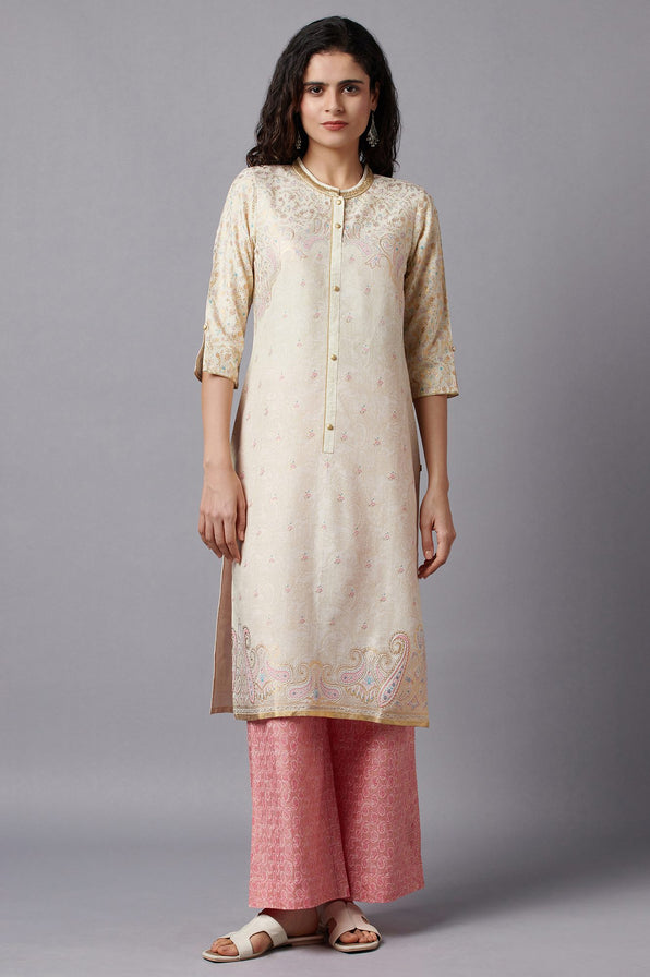 For the modern ethnic look, this kurta is a perfect pick. Crafted in premium fabric, this kurta flatters straight silhouette and foil floral print.