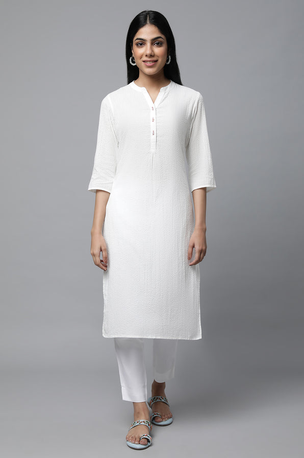A Must Have Wardrobe Classic This Summer. Treat Yourself To This Amazing Basic kurta Curated Just For You In Airy Seersucker Fabric. It Features A Mandarin Collar, Placket With Contrast Tonal Button Hole Detail, Shell Buttons. Available In Multiple Colors!!!