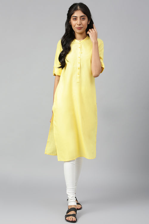 Yellow Mandarin Neck Solid kurta