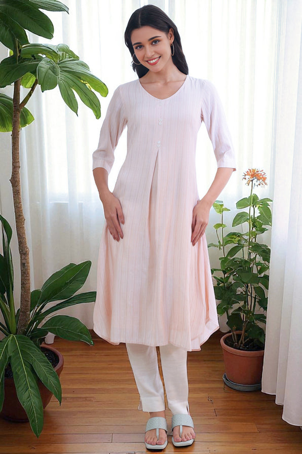 Discover the perfect blend of style and comfort with this Aurelia women's v-neck kurta. Crafted from 100% rayon, this mid-calf length piece offers a luxurious feel against the skin. The three-quarter sleeves provide versatility for various seasons, while the flared silhouette adds a touch of elegance to your casual wardrobe. The copper-toned hue brings a warm, earthy vibe to your ensemble, making it an ideal choice for fusion wear. This woven kurta seamlessly combines traditional elements with contemporary design, allowing you to effortlessly transition from day to evening occasions. The v-neckline adds a flattering touch, accentuating your neckline and complementing various face shapes. Embrace the fusion of comfort and style with this Aurelia kurta, perfect for the modern woman who appreciates both tradition and trend-setting fashion.