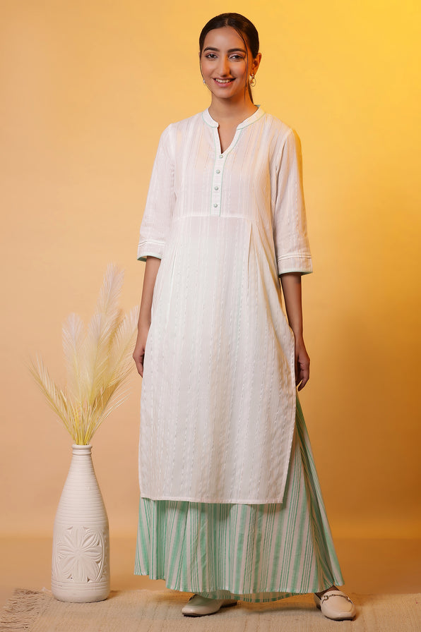 All time classic, white coloured kurta is everyones favourite for this season. It has contrast highlighted, pop coloured trims and piping to elevate your overall look. Perfect for any casual meet-ups or any evening-out.
