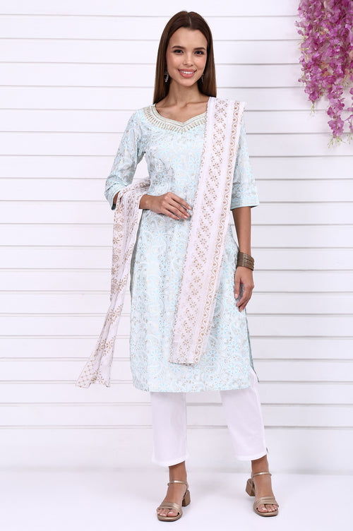 A delicate companion to festive kurtas, this white chiffon dupatta features subtle foil prints that shimmer gently under the light. The airy fabric lends itself to graceful draping, making it ideal for semi-formal events or traditional gatherings. Its understated embellishment ensures it elevates your look without overpowering it. Pair it with solids or printed kurtas for a well-rounded finish.