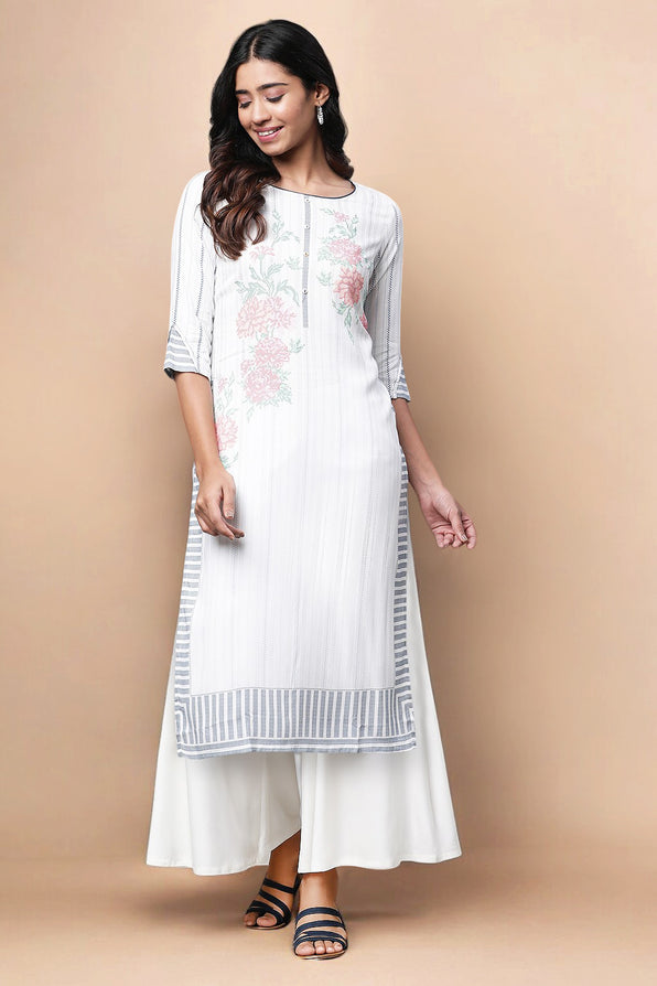 Simple yet elegant, this white straight kurta and palazzo set suits a variety of occasions. The minimal aesthetic is ideal for easy styling, and the monochrome base invites accessories that reflect your mood. Whether paired with bold jewellery or soft pastels, it adapts effortlessly.