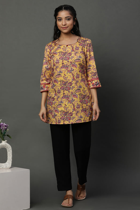 Ethnic kurti add polish and relevance to this design. Brighten your casual wardrobe with this yellow floral printed kurti in an easy short length. The cheerful palette lifts every look, while breathable construction keeps you comfortable through warm afternoons. The relaxed cut styles effortlessly with slim pants or denim for a fresh, modern mood. This kurti for women blends playful prints with practical design, making it perfect for work-from-home days, errands, or coffee dates. Minimal finishing ensures a neat line, and the soft handfeel invites repeat wear. Add this breezy piece to your rotation for days when effortless colour and comfort are the priority. This elegant piece balances comfort and style for daily wear. A versatile choice that pairs beautifully with your wardrobe. Refined detailing keeps it timeless and easy to style. Elevate everyday dressing with a polished, feminine finish. This elegant piece balances comfort and style for.